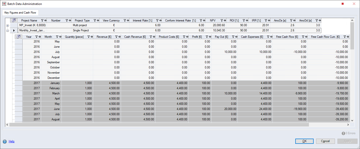 Here you can see various key figures of all opened projects in order to detect changes in other categories (e.g. investment changes) as efficiently as possible.