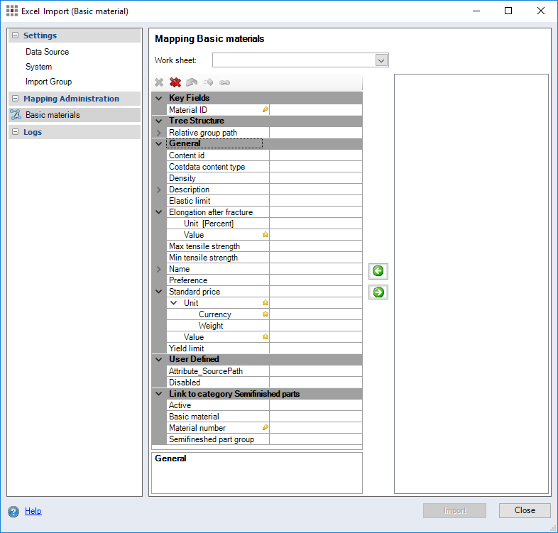Figure: Excel Import (Basic Material) dialog, Mapping Basic Materials
