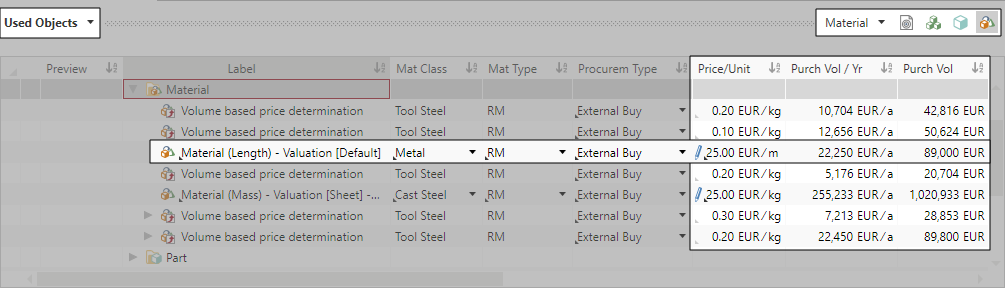 In FACTON you can calculate the annual and life cycle volume of material purchasing. The aim is to maintain an overview of how much material is required to manufacture a product and to enter into supplier negotiations on the basis of calculated information on material requirements.
