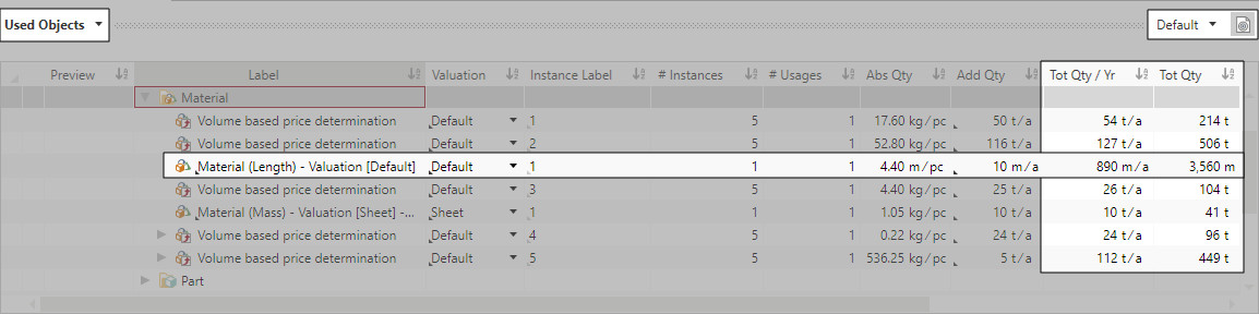 As Calculator you can use the same material (instance) at different usages positions in your bill of material. The annual volume is determined by the several usages for one and the same material.