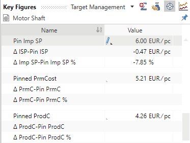 Pinned ProdC The pinned production posts equal the determined production costs of the should cost calculation.