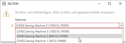 Three band saw machines are offered in a combobox, all matching the selected material. The value of »Clamping Diameter« of the machines is matching the material diameter to be processed.