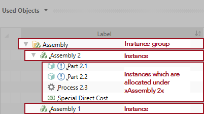 The name of the instance is shown in the column »Instance Label«. This instance label initially corresponds to the value of »# Instances« but can be overridden with F12.