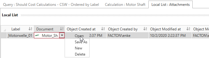 3. Alternative: Step 1 - 3: In the Structure view, right-click on the element whose file you want to edit ► Local Lists ► Attachments.