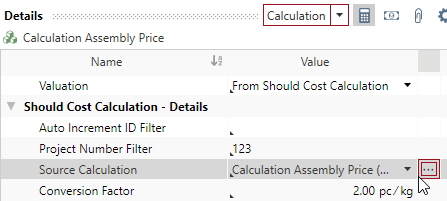 2. In the Details ► Calculation view schema (combobox)Should Cost Calculation - Details on the button (next to the Value column).